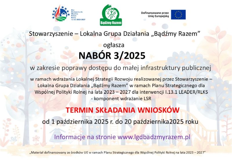 Ogłoszenie naboru w zakresie poprawy dostępu do małej infrastruktury publicznej |