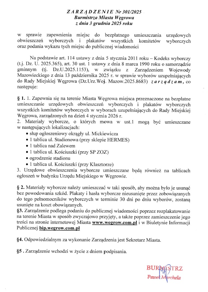 Zarządzenie w sprawie zapewnienia miejsc do umieszczania plakatów wyborczych