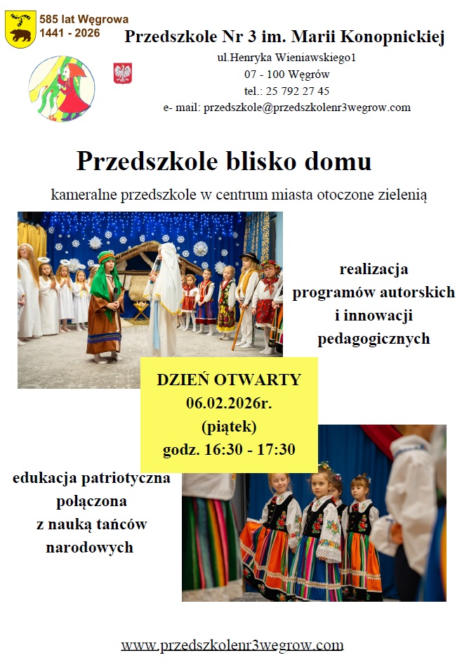 Przedszkole nr 3 zaprasza na dzień otwarty