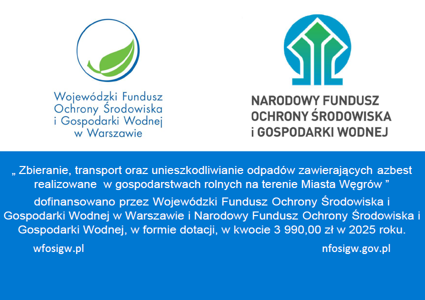 Zbieranie, transport oraz unieszkodliwianie odpadów zawierających azbest realizowane w gospodarstwach rolnych na terenie Miasta Węgrowa |