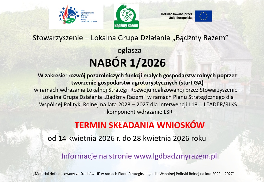 Rozwój pozarolniczych funkcji małych gospodarstw rolnych poprzez tworzenie gospodarstw agroturystycznych (start GA) - nabór |